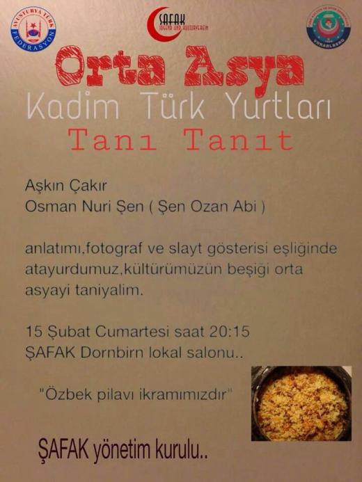 Şafak Dornbirn Derneği, Orta Asya'da bulunan Kadim Türk Yurtlar'nı tanıtma programı düzenliyor.