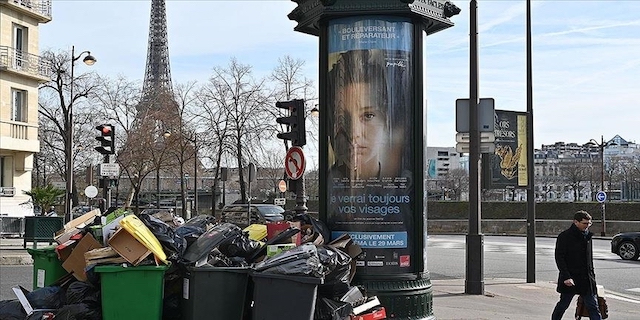 Temizlik işçilerinin hükümetin tartışmalı emeklilik reformuna karşı günlerdir devam eden grevi dolayısıyla Paris sokaklarında binlerce ton çöp birikmişti.