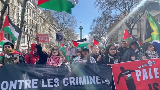 Paris'te ayrımcılık karşıtlarının yanı sıra Filistin destekçileri de yürüyüş yaptı.