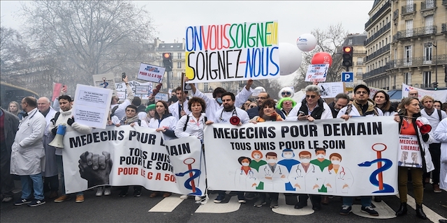 Yarın İçin Doktorlar Topluluğunun çağrısıyla Paris'in Pantheon Meydanı'nda toplanan pratisyen hekimler, Sağlık Bakanlığı yakınına kadar yürüdü.