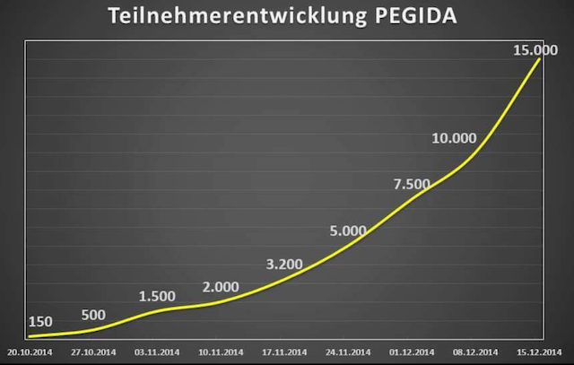 Almanya Dresden'de Lutz Bachmann adında bir Batı Almanya kökenli sabıkalının sosyal paylaşım sitesi Facebook üzerinden başlattığı kampanyaya katılım günden güne arttı.