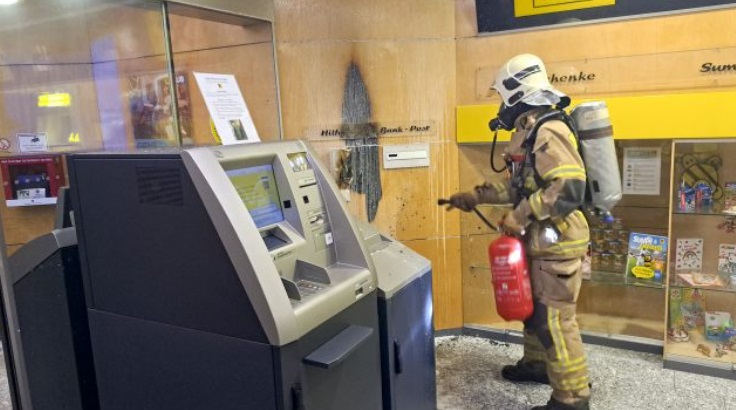 Raiffeisenbank'ın fuayesinde çıkan ilk yangın bir yangın söndürme tüpüyle kısa sürede kontrol altına alındı.