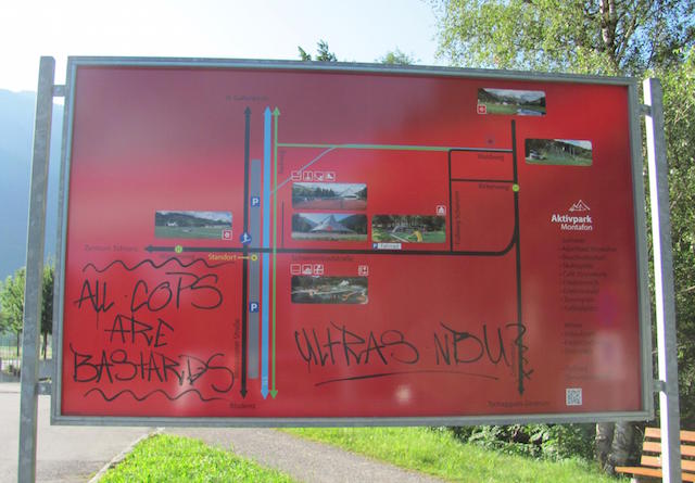Schruns'da cuma günü (10 Temmuz 2015) kimliği belirsiz kişi ya da kişiler gece yarısı Tschagguns'dan başlayarak Schruns'a kadar bir çok kamu malına zarar verdi.