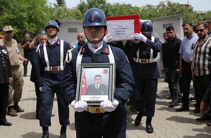 İl Müftüsü Ramazan Tolan'ın kıldırdığı cenaze namazının ardından şehit Gaffar Mayik'in cenazesi camiden çıkarılırken vatandaşlar, "kahrolsun PKK" ve "şehitler ölmez, vatan bölünmez" şeklinde slogan attı.