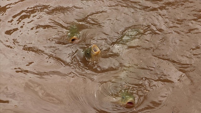 Yem atınca balıklar görünüyor