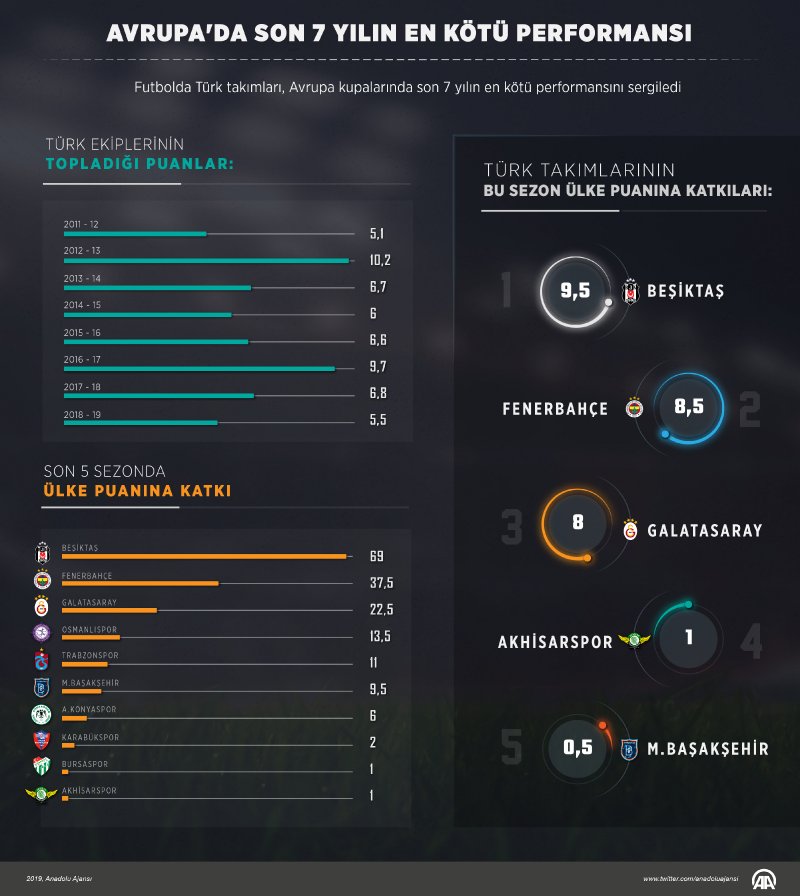Türk takımlarının bu sezon ülke puanına katkıları