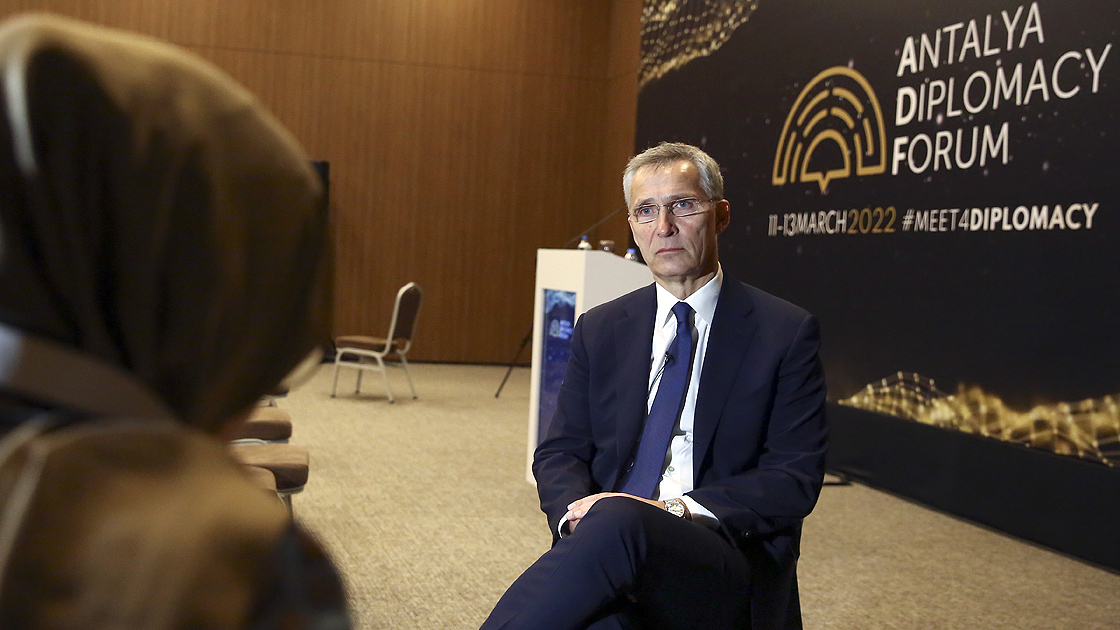 Rusya Dışişleri Bakanı Sergey Lavrov ve Ukrayna Dışişleri Bakanı Dmitro Kuleba'nın dün Antalya Diplomatik Forumu kapsamında bir araya gelmesine atıfta bulunan Stoltenberg, "Türkiye'yi de barışçıl bir çözüme gidebilecek diplomatik ve siyasi süreçleri kolaylaştırma çabaları nedeniyle takdirle karşılıyorum." diye konuştu.