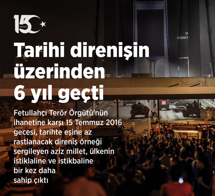 Darbecilere karşı tarihte eşine az rastlanacak direniş örneği sergileyen Türk milleti, karanlık gecede ülkenin istiklaline ve istikbaline bir kez daha sahip çıktı.