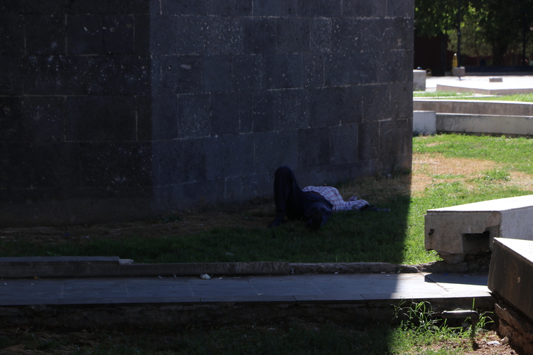 Sıcaklığın 44 dereceye ulaştığı Diyarbakır'da vatandaşlar klimalı ortamları ve gölgelik alanları tercih ederken, öğle saatlerinde sokak, cadde, çocuk parkı ve meydanlar boş kaldı.