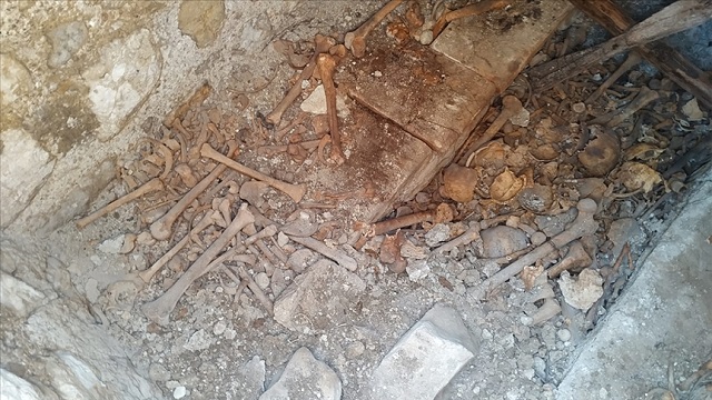 Çukurun bulunduğu bölgedeki taşları kaldıran Gürel, bir tünel ve çok sayıda kemik olduğunu gördü.