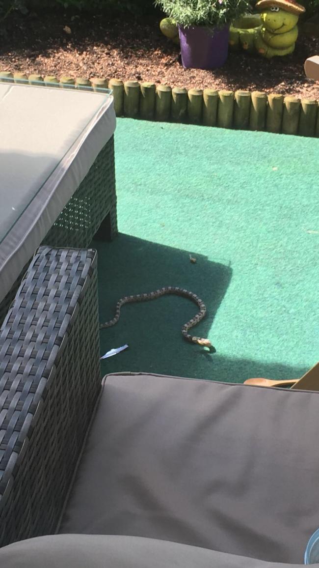 Küçük çocuğun yanında yaklaşık 1,5 metre boyunda bir yılan olduğunu gören anne adeta şok geçirdi.