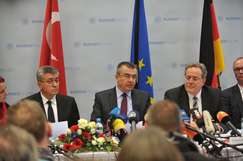 ''Türkiye ve Almanya arasında yabancı terörist savaşçıların ortak güvenliğimize tehditin engellenmesi konusunda da bir işbirliği ve kararlılık mevcuttur. Yabancı terörist savaşçılar konusunda Türkiye'nin gerekli her türlü tedbiri aldığını vurgulamak isterim. Alınan tüm tedbirler neticesinde yaklaşık 36 bin kişiye Türkiye'ye giriş yasağı konulmuş risk analiz grubu çalışmaları sonucunda 2 bin 352 kişinin Türkiye'ye girişi engellenmiştir. Bu vesileyle her türlü suç ve suçluyla mücadelede yakın işbirliği içinde olunan başta Romann ve Alman emniyetine teşekkür ediyorum.''