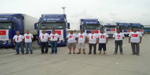 Eyleme katılan TIR şoförleri de giydikleri tişörtlerle yanyana gelerek "Bu adil mi?", "Ayrımcılık" sloganlarını oluşturarak eyleme renk kattı. Eylem sırasında araçlarına asılan İngilizce pankartlarda da "Malların serbest dolaşımı", "Transit geçiş hakkı kanazanılmış bir haktır" ifadeleri yeraldı. Avusturya’ya izin belegeleri olmadığı halde giriş yapan 13 TIR herhangi bir engellemeyle karşılaşmadı.