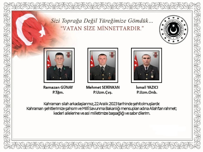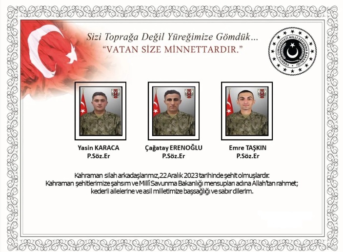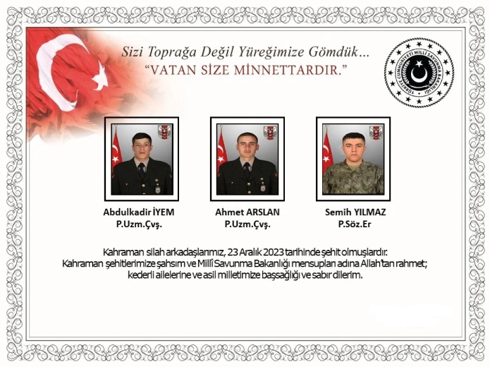 MSB, yine Irak'ın kuzeyinde 22 Aralık Cuma günü de 6 Mehmetçik'in şehadetini duyurmuştu.