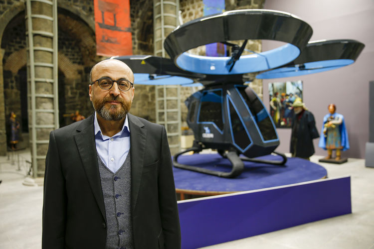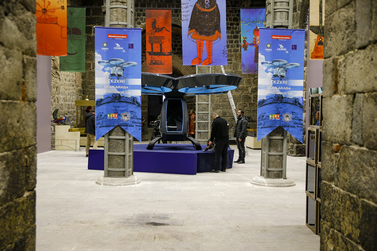 "Baykar tarafından tasarlanan uçan taksiyi ziyaretçilerimiz burada görebilecek. Diyarbakırlı gençler Selçuk Bayraktar'a bir çağrıda bulunmuşlar, TEKNOFEST'te uçan araba ziyarete açıldığı zaman o arabanın ilk uçuşunu Diyarbakır'da gerçekleştirmesini istemişlerdi. Çünkü uçan arabaya Cezeri adı verildi. Cezeri bu topraklarda yetişmiş, uçan arabanın da ilk atası sayılabilecek bir isim. Dolayısıyla Diyarbakırlı gençler de uçan arabayı Diyarbakır'a davet ettiler ve Selçuk Bayraktar da bizleri kırmayarak sergimize katkıda bulundu. Ziyaretçilerimiz sergimizde Cezeri uçan arabayı da görebilecekler. Aynı zamanda uçan arabanın çalışma prensipleri ile ilgili olarak rehber arkadaşımız ziyaretçilerimize ayrıntılı bilgiler verecek."
