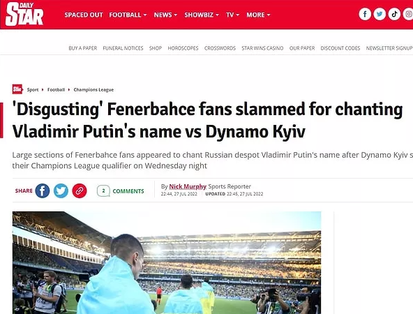Portekiz basınından Desporto Ao Minuto ise "Rezalet! Dinamo Kiev golü attı. Fenerbahçeliler Putin diye haykırdı." başlığını kullandı.
