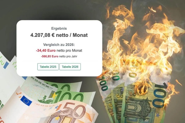 - 2026’da aynı maaşla 1.210 avro SV primi ve 1.437 avro gelir vergisi ödeyecek. Bu durumda aylık 14,24 avro, yıllık yaklaşık 251 avro kayıp yaşanacak.