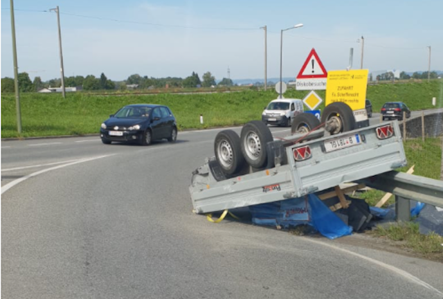 Lustenau'da virajı hesaba katamayan sürücü aracın arkasına takılı olan kasayı yol ortasında devirdi.
