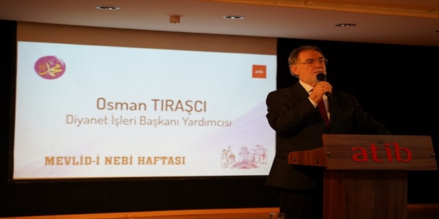 Tıraşçı, Hazreti Muhammed’in insanlığa uyarıcı olarak gönderilen son peygamber olduğunu belirterek, ailesi, eşleri ve çocuklarıyla kurduğu ilişkinin başta Müslümanlar olmak üzere diğer insanlar için de önemli bir örnek teşkil ettiğini anlattı.