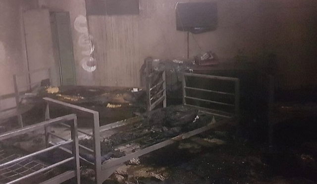 Mülteci gençler polis kontrolü gözetiminde kaldıkları hastahanede tedavi edilirken, çıkan yangın ile alakalı araştırmanın sürdüğü bildirildi.