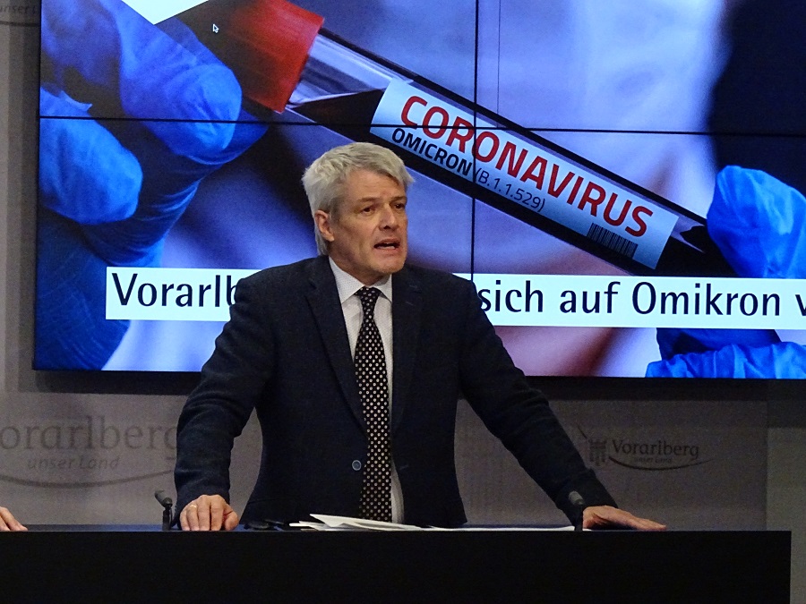 Devlet Tıbbi Direktörü Wolfgang Grabher, Omikron varyantının geleceğinden şüphe duymadığını belirtti: "Artık mesele, beklenen dalganın ortaya çıkmasını geciktirmek ve oluşturacağı sıkıntılara önceden hazırlanmak meselesi" dedi. Grabher, şu ana kadar pozitif test edilen kişilerin, başka kişiler ile temas kurmuş olmalarının "endişe verici" olduğunu belirtti. Bu nedenle daha sıkı karantina önlemleri hayata geçirildi.