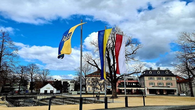 Hohenems belediyesi Ukrayna bayrağı astı