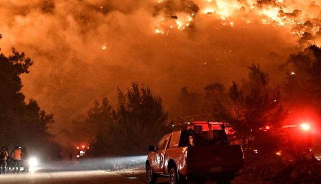 Cumartesi günü sahil güvenlik gemileri ve onlarca özel tekne 2,000'den fazla turisti sahillerden güvenli bir yere taşıdı. Daha önce şiddetli rüzgarlar adanın güneydoğu kesimindeki yangını körüklemişti. Yangının çıktığı Salı gününden bu yana geniş orman alanları ve birkaç bina alevlerin kurbanı oldu. Yunan Sivil Savunması da Pazar günü, devam eden sıcak hava dalgası nedeniyle ülkenin neredeyse yarısında orman yangını riskinin çok yüksek olduğu konusunda bir kez daha uyarıda bulundu. Bu bölgede 45 santigrat dereceye varan sıcaklıklar bekleniyordu.