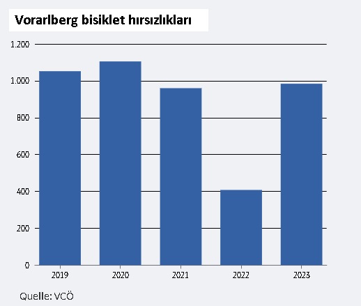 İçişleri Bakanlığı'nın güncel verilerine atıfta bulunan VCÖ'ye göre, Vorarlberg'de bisiklet hırsızlığı sayısı bir önceki yıl büyük bir artışla 984'e yükseldi. Bu sayı, 960 bisikletin çalındığının rapor edildiği 2021 yılı seviyesine geri döndü. 2022 yılında ise çok keskin bir düşüşle 408 bisiklet hırsızlığı yaşandı. Avusturya genelinde bisiklet hırsızlığı sayısı bir önceki yıla göre yüzde on artarak 18.566'ya yükseldi.