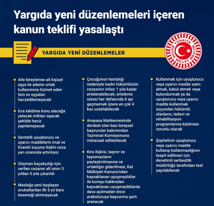 Genel Kurulda kabul edilen kanunla ilgili öne çıkan başlıklar şöyle: