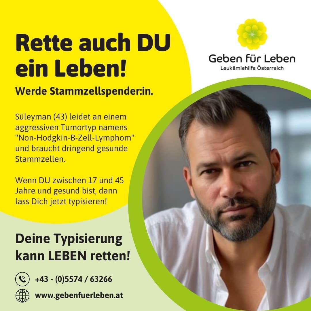 Süleyman Şentürk için Geben für Leben ve Havadis.at tarafından düzenlenecek olan doku tiplemesi kampanyası, sadece Şentürk’e değil, kök hücre nakli bekleyen tüm hastalara ilaç olabilecek. 25 Şubat 2024 Pazar günü saat 14:00 ile 18:00 arası Lauterach Riyo Eventcenter'de planlanan kampanyaya tüm duyarlı vatandaşlarımızı bekliyoruz.