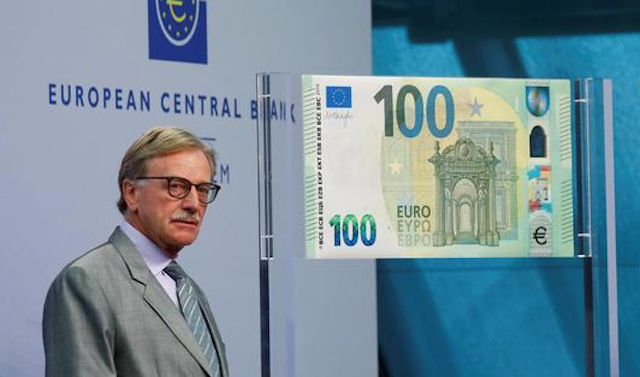 Avrupa Merkez Bankası Yönetim Kurulu üyesi Yves Mersch, piyasaya sürülecek yeni 100 ve 200 euroluk banknotları kamuoyuna tanıttı.