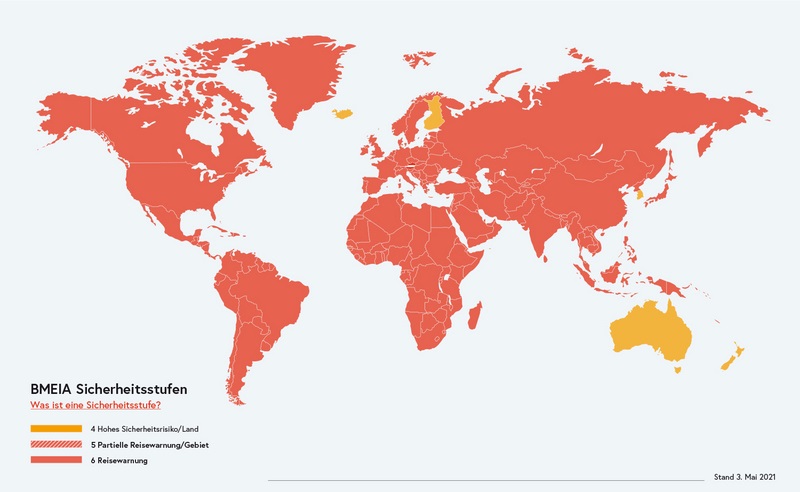 Belçika, Bulgaristan, Danimarka, Almanya, Estonya, Finlandiya, Fransa, Lichtenstein, Yunanistan, İrlanda, İzlanda, İsrail, İtalya, Letonya, Lüksemburg, Malta, Monako, Yeni Zelanda, Norveç, Polonya, Portekiz, Romanya, San Marino, Singapur, Slovakya, Slovenya, İspanya, İsviçre, Güney Kore, Çek Cumhuriyeti, Macaristan, Vatikan, Andorra ve Avustralya dahil olmak üzere enfeksiyon oranları düşük olan ülkelerden Avusturya'ya giriş yapanlar için artık 10 günlük karantina kuralı yok.