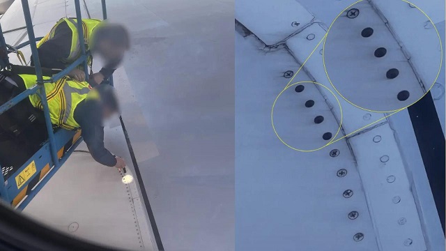 Hardy tarafından çekilen görüntülerde, mühendislerden birinin uçağın kanadına tırmandığı ve ardından bazı bağlantı elemanlarını tornavidayla tamir ettiği görülüyor.