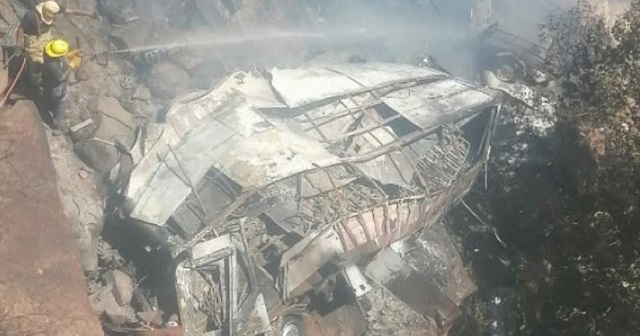 Açıklamada, "Sürücünün kontrolü kaybederek köprüdeki bariyerlere çarpması sonucu otobüsün köprüden geçerek uçuruma düştüğü ve burada alev aldığı iddia ediliyor" denildi.