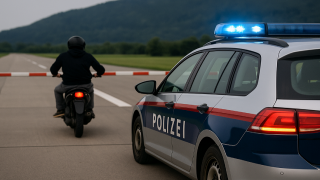 Hohenems’te 16 yaşındaki ehliyetsiz bir moped sürücüsü, polisten kaçarken havaalanı pistinden geçti. Genç sürücü, polis helikopteri desteğiyle yakalandı.