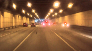 Feldkirch Ardetzenberg tüneli içinde düşen motorsiklet büyük bir kazaya neden oldu.