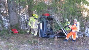 Vorarlberg Mittelberg'de yamaç yolunda kayan araç şarampole yuvarlandı.
