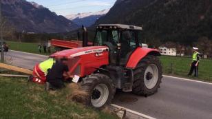 Ausserbraz'da bir traktör sürücüsü, yanlış kolu çekti taşıdığı kepçeyi yola düşürdü.