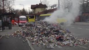 Götzis'de çöp kamyonunda yaşanan patlamanın ardından çıkan yangın nedeni ile çöpler yol ortasına boşaltıldı.
