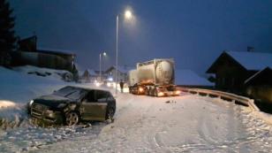 Schruns'da buzlu yolda kayan araç kamyonla kafa kafaya çarpıştı.