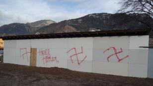Bludenz'de bir duvara gamalı haç işaretleri çizdiler.