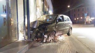 Hard'da gece yarısı gerçekleşen ilginç kazada bir araç bankaya girdi.