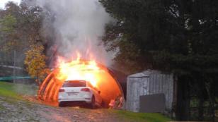 Vorarlberg Gaschurn'da alev alan araç tamamen yandı.