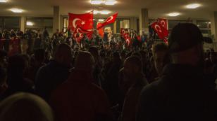 Vorarlberg'de halk darbe girişimleri haberlerinin ardından sokağa dökülerek, T.C Bregenz Başkonsolosluğu önünde toplandı.