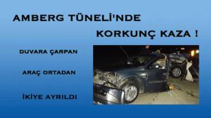 Amberg Tüneli'nde duvara çarpan araç ortadan ikiye ayrıldı.