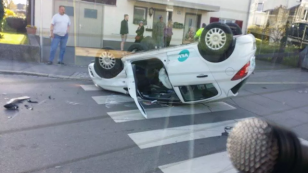 Lustenau'da iki araç çarpışırken, araçlardan bir tanesi ters döndü.