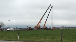 Lustenau'da devrilen beton karıştırıcı uzun süre trafiği felç etti.