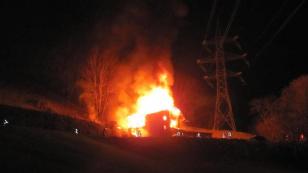 St. Gallenkirch'de bir tamirhanenin çatısında çıkan yangın kısa sürede bütün binayı sardı...