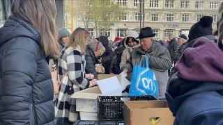 Yardım kuruluşu yöneticisi Jutte Schulte, "Torbalarda yiyecek ve Noel çikolataları yer alıyor. Aralık ayı boyunca her cuma bunu Dom Forum'un önünde yapıyoruz." dedi.