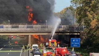 Almanya'nın Kuzey Ren-Vestlafya eyaletinde benzin yüklü tanker otobanda alev alev yandı.